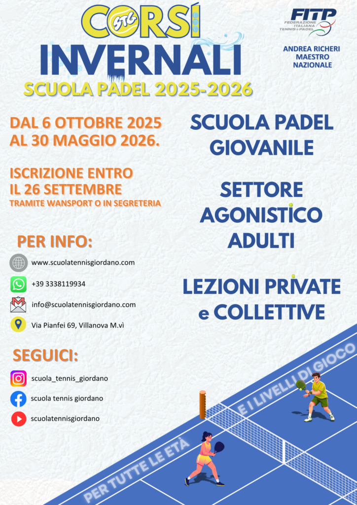 La STG offre lezioni individuali e collettive adatte ad ogni età e livello di gioco, sia di tennis che di padel, con due giornate di OPEN DAY, il 19 e il 26 settembre, ottime per provare quelli che saranno i corsi invernali!